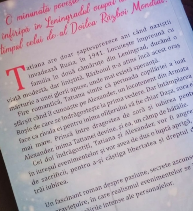 Unul dintre cele mai puternice elemente ale romanului este fundalul istoric riguros construit. Asediul Leningradului, care a durat aproape 900 de zile, este prezentat cu o acuratețe impresionantă. Paullina Simons descrie viața zilnică a locuitorilor orașului: lipsa hranei, frigul extrem, bombardamentele constante și degradarea treptată a condițiilor de trai.